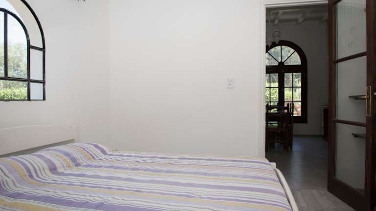 Die Unterkunft umfasst ein Schlafzimmer, ein Wohnzimmer sowie eine voll ausgestattete Küche, die mit einem Kühlschrank und einem Ofen ausgestattet ist.