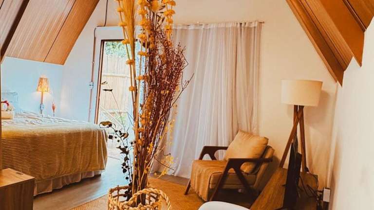 Cabana Pitomba - Viagem Inspirada ist ein Ferienhaus mit einem Garten, das eine private Atmosphäre bietet. Die Unterkunft verfügt über einen Balkon und ermöglicht einen komfortablen Aufenthalt mit Klimaanlage.