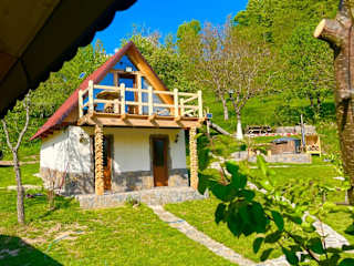 Die Cabană tip A Wild Glamping Cornereva befindet sich in Cornereva, in einer naturnahen Umgebung mit Zugang zu einem Garten und einer Terrasse.