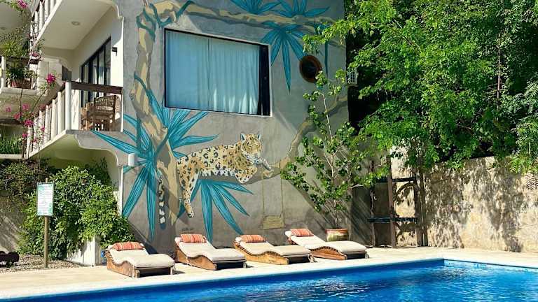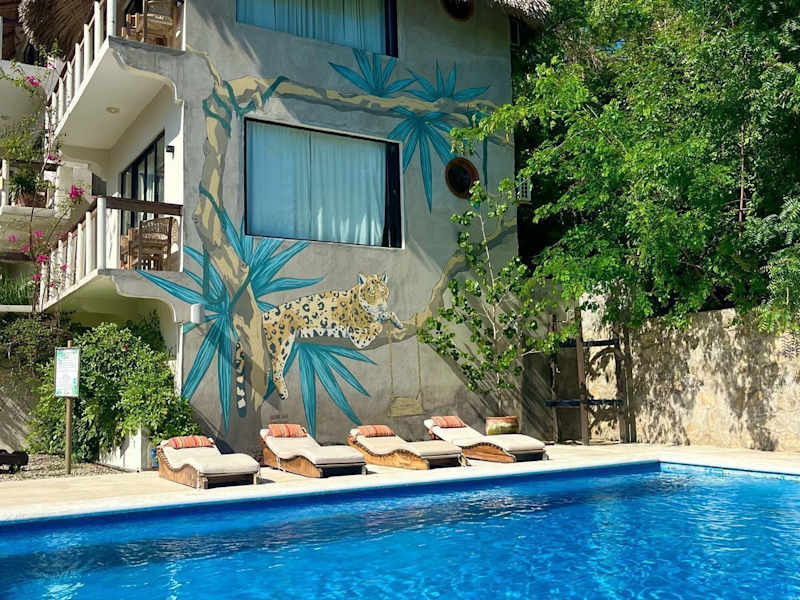 Das Cabañas Sicarú Mazunte ist die perfekte Unterkunft für einen entspannten Aufenthalt in Mazunte. Mit einem Außenpool, kostenfreien Privatparkplätzen und einer schönen Terrasse bietet das Hotel alles, was Sie für einen angenehmen Urlaub benötigen. Die Zimmer sind gemütlich eingerichtet und verfügen über kostenfreies WLAN sowie einen Balkon mit Blick auf den Pool oder die Berge. Die Lage des Hotels ist ideal, nur wenige Gehminuten vom Strand von Mazunte und verschiedenen Sehenswürdigkeiten entfernt.