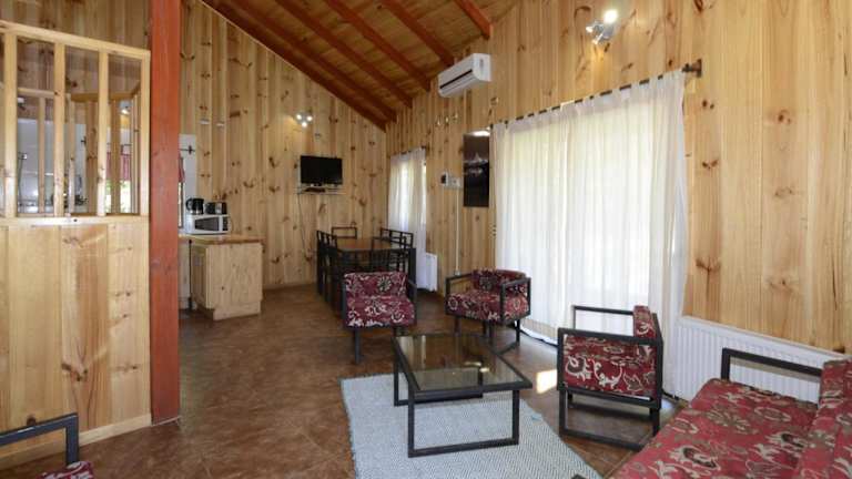 Das Cabanas Turismo Don Ambrosio ist eine ideale Unterkunft für einen erholsamen Aufenthalt in der Nähe von Salto del Laja. Hier können Sie in einem klimatisierten Ferienhaus mit Terrasse und kostenlosem WLAN entspannen. Der saisonale Außenpool und der schöne Garten laden zum Verweilen ein. Die Unterkunft bietet zudem eine voll ausgestattete Küche und ein eigenes Bad. Ein Kinderspielplatz sorgt für Unterhaltung der kleinen Gäste.