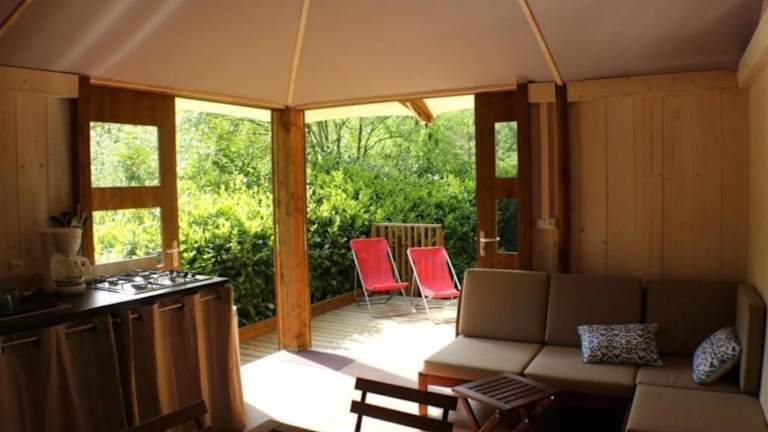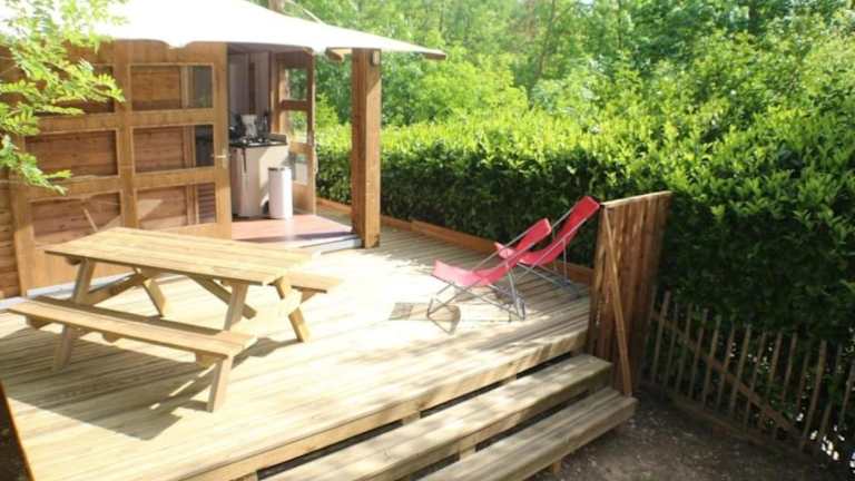 Die Unterkunft Camping 3 étoiles - Piscine - eec0ca bietet eine Terrasse und einen Pool für die Gäste. Sie stellt eine komfortable Basis für Aufenthalte in der Umgebung dar.