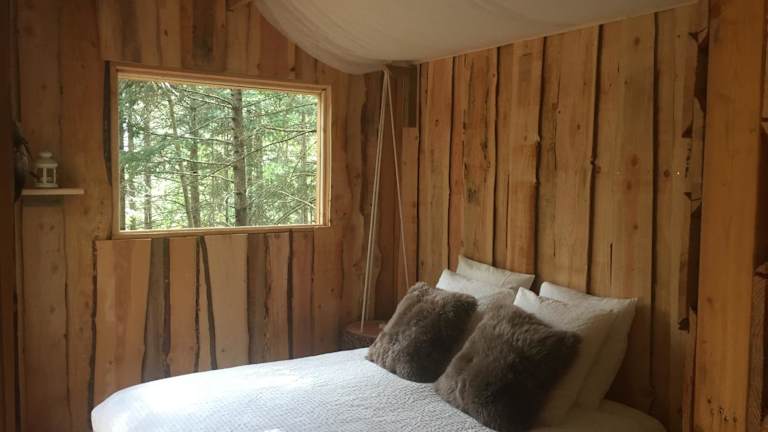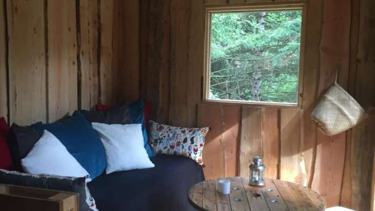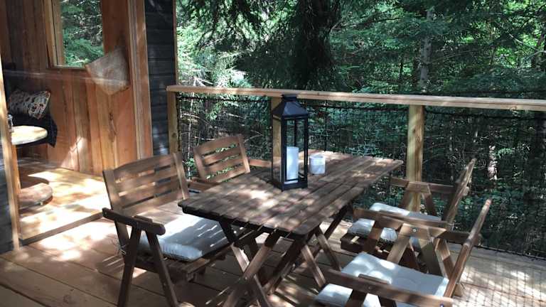 Das Cabane de l'Ecureuil bietet luxuriöse Zelte mit allem Komfort, den Sie für einen erholsamen Aufenthalt benötigen. Handtücher und Bettwäsche werden gestellt, sodass Sie sich um nichts kümmern müssen. Jedes Zelt verfügt über eine Terrasse, auf der Sie die Natur und die Ruhe genießen können.