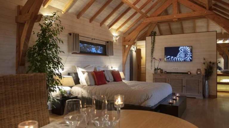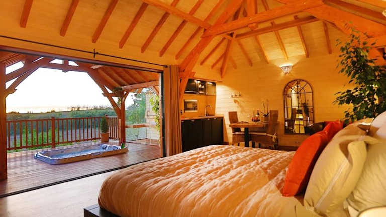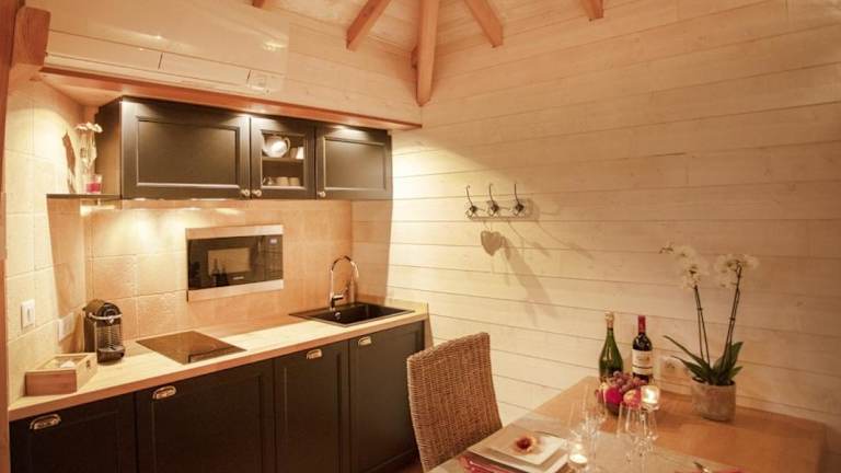 Das Cabane de Prestige avec Jacuzzi et Sauna privatifs bietet Ihnen eine Bar, in der Sie erfrischende Getränke genießen können. Alternativ können Sie Ihre eigenen Mahlzeiten in der voll ausgestatteten Küche zubereiten und sie im gemütlichen Essbereich des Bed & Breakfasts genießen.