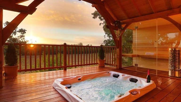 Das Cabane de Prestige avec Jacuzzi et Sauna privatifs in Alzonne bietet Ihnen einen luxuriösen Aufenthalt mit atemberaubender Bergkulisse. Hier können Sie sich inmitten einer malerischen Umgebung entspannen und Aktivitäten wie Wandern und Angeln genießen. Das Bed & Breakfast verfügt über ein Schlafzimmer, ein Wohnzimmer, eine voll ausgestattete Küche und ein Badezimmer mit Dusche und Whirlpool. Zur Ausstattung gehören ein Flachbild-Sat-TV, ein Blu-ray-Player, ein Computer und eine iPod-Dockingstation. Entspannen Sie im Wellnessbereich mit Sauna, Whirlpool und Wellnesscenter. Die Sehenswürdigkeiten der Region wie die Kathedrale von Carcassonne und das Memorial House (Maison des Memoires) sind ebenfalls leicht zu erreichen.