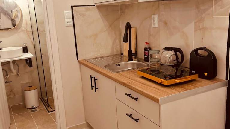 Die Cactus Luxury suite2 bietet Übernachtungsmöglichkeiten in einer modernen Ferienwohnung mit einer Terrasse und kostenfreiem WLAN. Diese Unterkunft ist mit Klimaanlage ausgestattet und umfasst ein Schlafzimmer, einen Essbereich und eine Küche mit Kühlschrank und Minibar. Die Unterkunft ist als Nichtraucherzone ausgewiesen und Unterkünfte für Haustiere sind vorhanden. Die Check-in-Zeiten sind von 15:00 bis 18:00, während der Check-out zwischen 08:00 und 11:00 erfolgt.