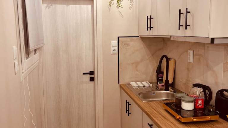 Die Ferienwohnung verfügt über ein Schlafzimmer, einen Kabel Flachbild-TV, einen Essbereich sowie eine voll ausgestattete Küche. Handtücher und Bettwäsche werden bereitgestellt. Zu den weiteren Annehmlichkeiten zählen ein Balkon und allergikerfreundliche Zimmer. Die Unterkunft bietet schallisolierte Zimmer und eine Heizungsanlage.