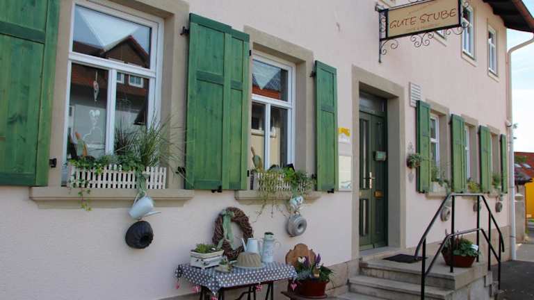 Die Pension Gute Stube in Sulzfeld bietet Ihnen eine gemütliche Unterkunft mit gut ausgestatteten Zimmern und kostenfreiem WLAN. Sie liegt in einer schönen Umgebung, in der Sie verschiedene Freizeitaktivitäten wie Radfahren und Wandern genießen können. In der Nähe finden Sie auch Thermalbäder und interessante Städte wie Bad Kissingen und Coburg. Parkplätze und ein überdachter Bereich für Fahrräder und Motorräder stehen kostenfrei zur Verfügung.