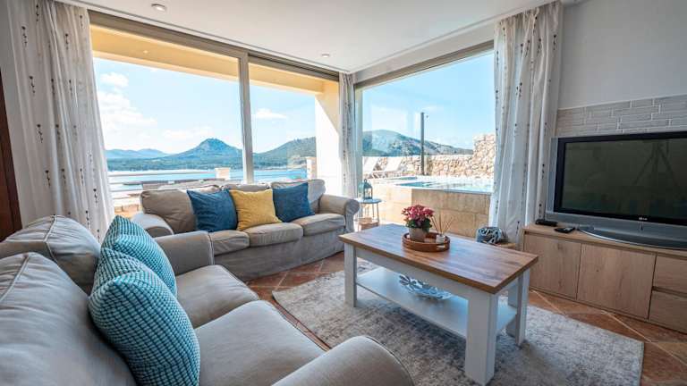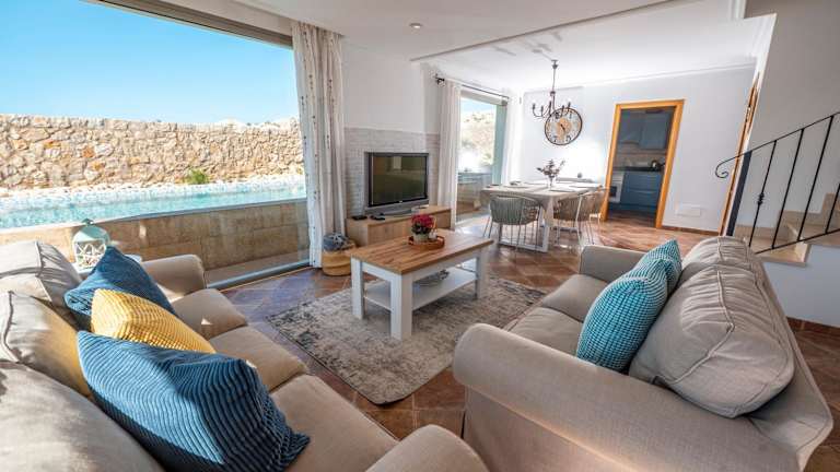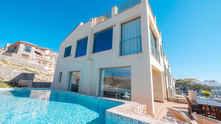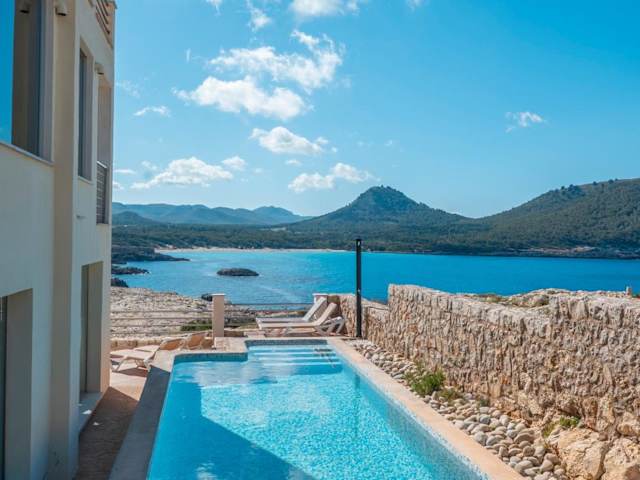 Das Cala Agulla 1 bietet komfortable und klimatisierte Unterkünfte mit einem eigenen Pool und einem Balkon. Das Apartment verfügt über 3 geräumige Schlafzimmer und 2 Badezimmer. Bettwäsche und Handtücher werden gestellt. In der voll ausgestatteten Küche können Sie Ihre eigenen Mahlzeiten zubereiten. Das Wohnzimmer ist mit einem Flachbild-Sat-TV ausgestattet und es gibt auch einen Essbereich. Von der Terrasse aus genießen Sie einen herrlichen Meerblick.