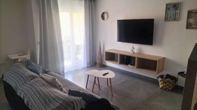 Die Ferienwohnung umfasst zwei Schlafzimmer, ein Wohnzimmer mit Flachbild-TV, eine gut ausgestattete Küche mit Kühlschrank und Mikrowelle sowie zwei Badezimmer mit Dusche. Zudem gibt es einen Balkon mit Meerblick. Handtücher und Bettwäsche werden bereitgestellt.
