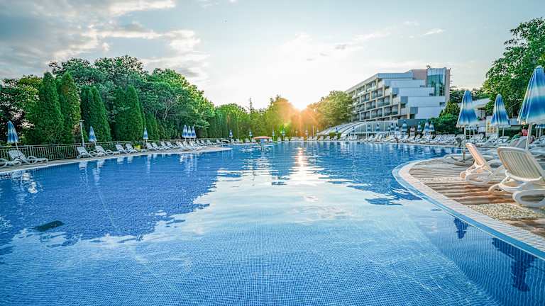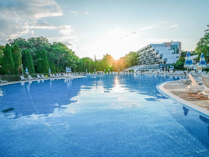 Additional free hotel services: - Shuttle bus to the beach and back every 30 minutes from 9:00 to 17:00 - 1 parasol and 2 sun loungers per room by the pool and on the beach from the 3rd row upwards - Wake-up call by telephone - Entrance to the nearby Aqua Mania water park - Delivery of messages to the rooms - WiFi internet access in the hotel lobby, in the lobby and at the pools - 3 children's playgrounds - Safe at the reception desk Other services that are not included in the “All Inclusive” package and are payable locally: - Spa center at Hotel Ralitsa Superior - Special drinks and cocktails according to menu choice - Special bottled wine, produced especially for Albena - Currency exchange - Laundry and ironing service - Cab service - Massage service - car rental