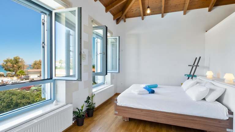Die Calma Seaside Villa befindet sich in Kalyves, einem malerischen Küstenort in der Nähe von Chania. Die Villa liegt direkt am Strand und bietet einen herrlichen Blick auf das Meer. In der Umgebung finden Sie auch die Strände Kolatsos, Kiani und Hermans. Der internationale Flughafen Chania ist nur 25 km entfernt und leicht zu erreichen.