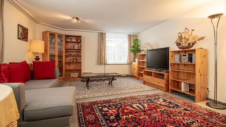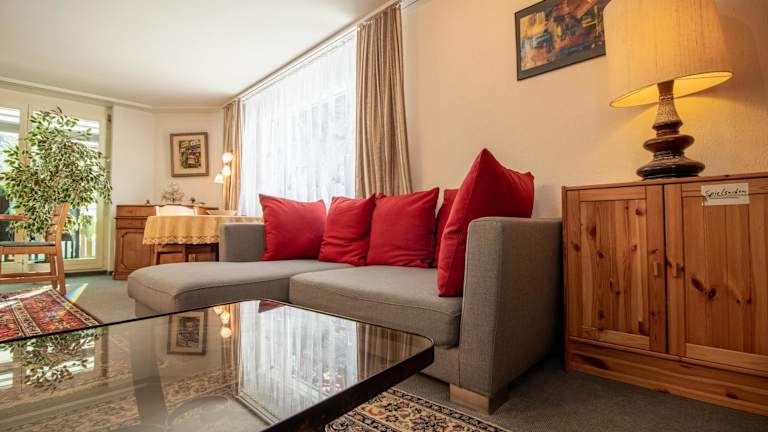 Die Ferienwohnung umfasst zwei Schlafzimmer, ein Wohnzimmer, ein Flachbild-TV und eine gut ausgestattete Küche mit Kühlschrank und Geschirrspüler. Des Weiteren sind ein Badezimmer mit Dusche sowie eine Terrasse mit Bergblick vorhanden. Handtücher und Bettwäsche werden bereitgestellt.