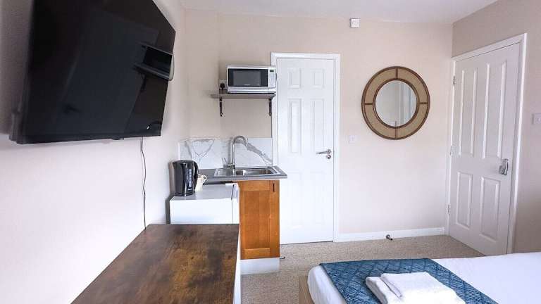 Die Ferienwohnung umfasst ein Schlafzimmer, ein Wohnzimmer sowie eine voll ausgestattete Küche, die mit einem Kühlschrank und einer Kaffeemaschine ausgestattet ist. Das Badezimmer verfügt über eine Badewanne und kostenlose Pflegeprodukte. Handtücher und Bettwäsche werden in der Unterkunft bereitgestellt.