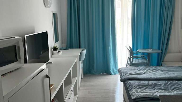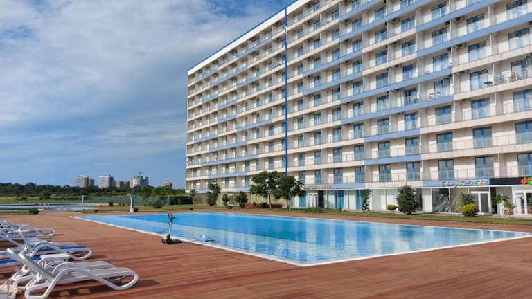 Die Unterkunft Camera de închiriat Blaxy Premium Resort befindet sich in Olimp, etwa 400 Meter vom Strand Plaja 23 August entfernt. In der Umgebung liegen das Einkaufszentrum City Park Mall (39 km), der Siutghiol-See (46 km) sowie das Oak Tree Reserve 'Stejarii Brumarii' (5,1 km). Weitere wichtige Ziele in der Nähe sind Paradis Land Neptun (5,4 km) und der Costineşti Amusement Park (6,2 km). Der nächstgelegene Flughafen ist der Flughafen Mihail Kogălniceanu, 61 km entfernt.
