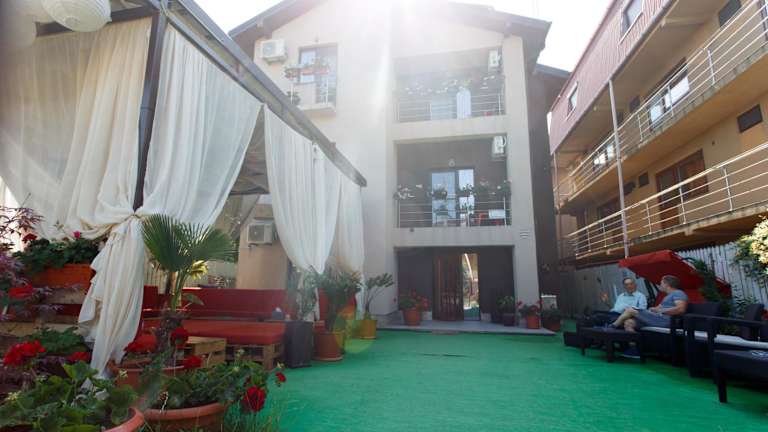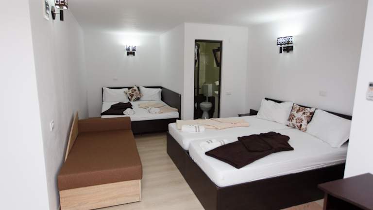 Die Vila Sandra in Costinesti ist eine ideale Unterkunft für Ihren Strandurlaub. Mit kostenfreiem WLAN, einer Sonnenterrasse und kostenlosen Parkplätzen bietet die Pension alles, was Sie für einen angenehmen Aufenthalt benötigen. Die Zimmer sind komfortabel eingerichtet und verfügen über einen Flachbild-Kabel-TV, einen Kühlschrank und ein eigenes Bad. Eine voll ausgestattete Gemeinschaftsküche steht ebenfalls zur Verfügung. Die Lage ist perfekt, nur 300 m vom Strand und in der Nähe von Geschäften und Restaurants. Der Bahnhof ist nur 2 Gehminuten entfernt und die Stadt Constanţa erreichen Sie nach einer kurzen Fahrt von 25 km.