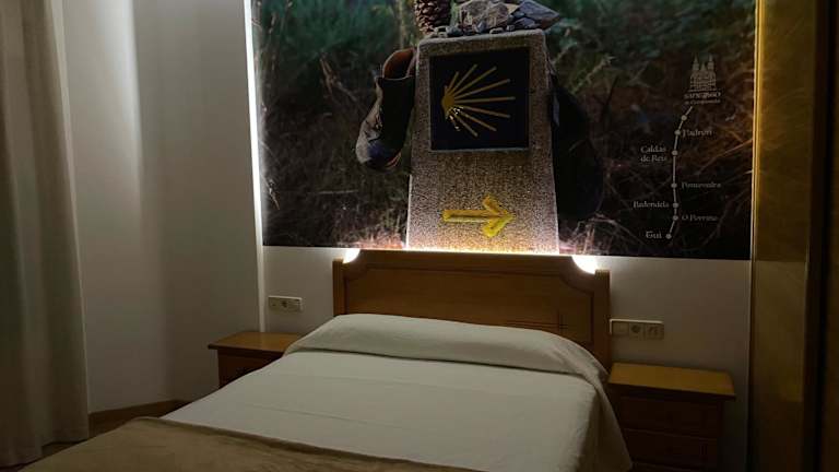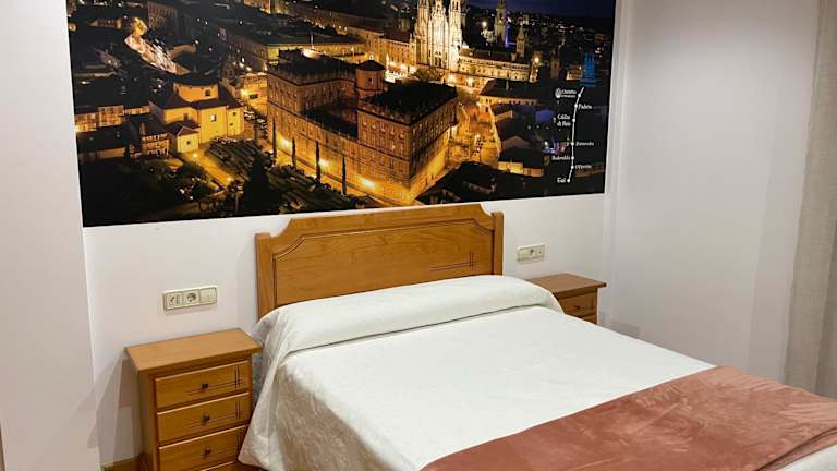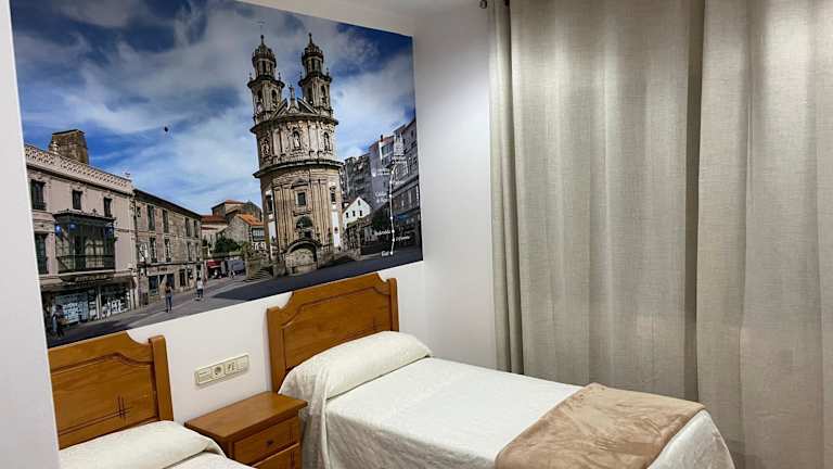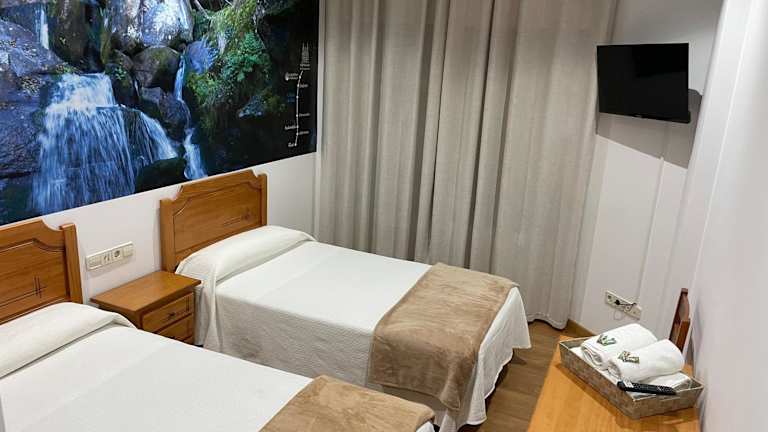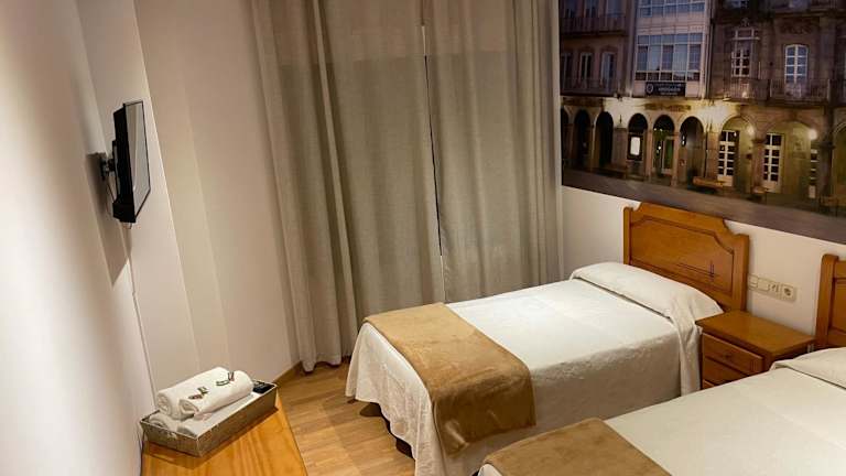 Die Zimmer im Hotel Camiño Portugues sind modern eingerichtet und bieten alles, was man für einen angenehmen Aufenthalt benötigt. Jedes Zimmer verfügt über einen Kleiderschrank, einen Flachbild-TV und ein eigenes Badezimmer. Die Zimmer sind gemütlich und bieten eine entspannte Atmosphäre, in der man sich nach einem langen Tag voller Entdeckungen gut erholen kann.