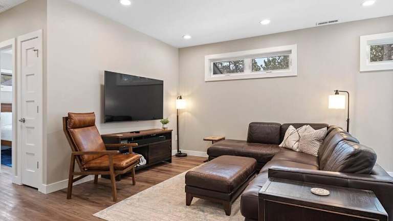 Camp Bluebird bietet eine klimatisierte Unterkunft mit einer Veranda und Bergblick. Die Einrichtung umfasst einen Privatparkplatz und kostenloses WLAN. Es handelt sich um ein Ferienhaus mit zwei Schlafzimmern und komfortablen Annehmlichkeiten.