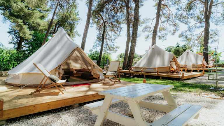 Camp 'Dvor' bell tent accommodation ist eine Nichtraucher-Pension mit einer Vielzahl von Übernachtungsmöglichkeiten in Form von Bell-Zelten. Die Unterkunft verfügt über einen saisonalen Außenpool und kostenloses WLAN in der gesamten Anlage. Kostenlose Privatparkplätze stehen Gästen zur Verfügung, die mit dem Auto anreisen.