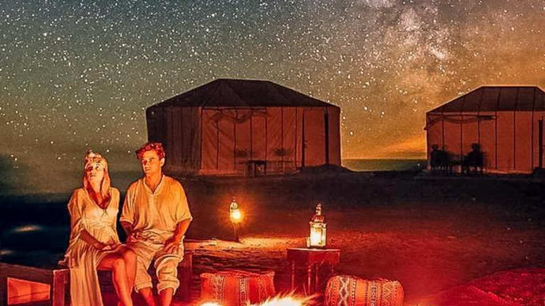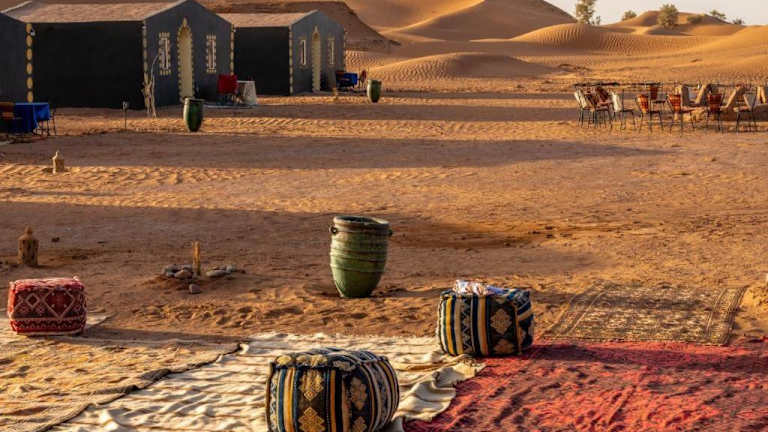 Das Camp Sahara Holidays in M’hamid El Ghizlane bietet seinen Gästen einen unvergesslichen Aufenthalt inmitten der Wüste. Mit einem wunderschönen Garten, einer gemütlichen Gemeinschaftslounge und einer Terrasse können Sie die Natur in vollen Zügen genießen. Das hauseigene Restaurant verwöhnt Sie mit köstlichen vegetarischen, veganen und Halal-Gerichten. WLAN steht Ihnen in allen Bereichen kostenlos zur Verfügung. Nutzen Sie den direkten Zugang zu den Skipisten und mieten Sie sich Skier oder Fahrräder auf dem Campingplatz. Für eine bequeme Anreise steht Ihnen ein kostenpflichtiger Flughafentransfer zur Verfügung.