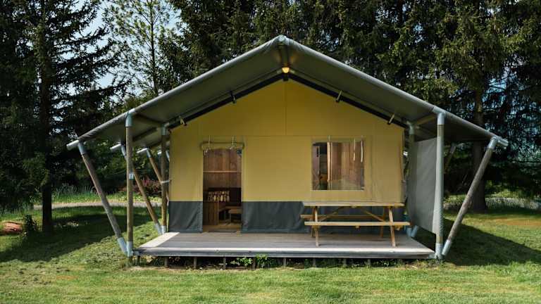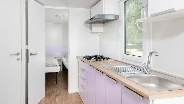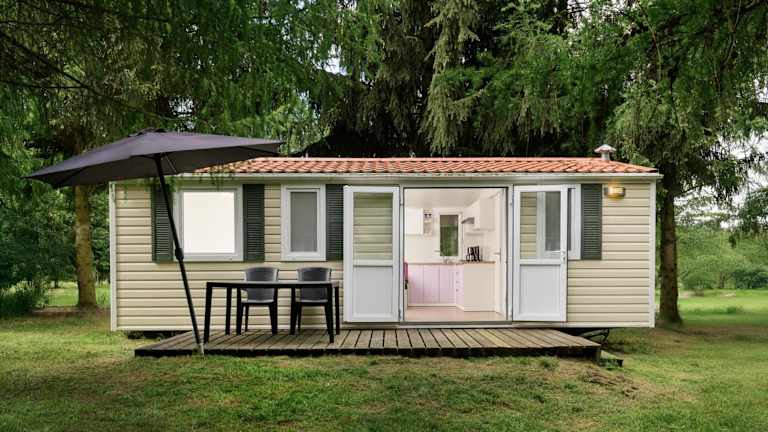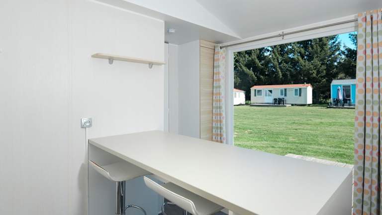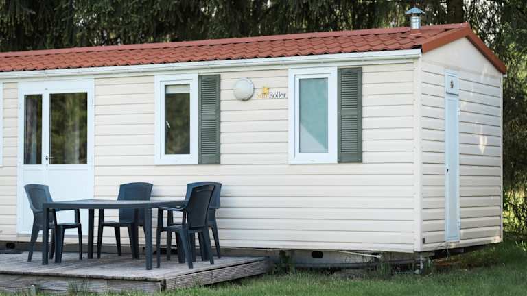 Die bunten Mobilheime sind mit einer Küchenzeile, einem Kühlschrank, Küchenutensilien sowie einem eigenen Bad mit Dusche ausgestattet. Jedes Mobilheim bietet zudem Bergblick und verfügt über eine Terrasse mit Gartenmöbeln.