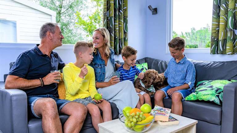 Die Mobilheime auf dem Camping Nieuwpoort bieten Ihnen Komfort und Privatsphäre während Ihres Aufenthalts. Jedes Mobilheim verfügt über eine Terrasse, auf der Sie die frische Luft und die Natur genießen können. Das Wohnzimmer ist mit einem TV ausgestattet, damit Sie sich entspannen und Ihre Lieblingssendungen verfolgen können. Die offene Küche ist mit einem Essbereich ausgestattet, wo Sie Ihre Mahlzeiten bequem zubereiten und genießen können. Jedes Mobilheim verfügt außerdem über ein eigenes Bad mit Dusche und separatem WC, um Ihren Komfort zu gewährleisten.