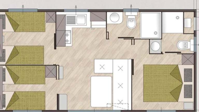 Die Mobilheime im Camping Rose verfügen über eine Terrasse und bieten Platz für erholsame Nächte. Jedes Mobilheim verfügt über ein eigenes Badezimmer mit Dusche, einen gemütlichen Wohnbereich mit Sofa und einen Essbereich mit einer Küchenzeile. Einige Unterkünfte bieten zudem einen herrlichen Blick auf den See.