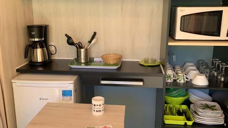 Die Unterkünfte im Camping Club l'Air Marin sind mit allem ausgestattet, was Sie für einen komfortablen Aufenthalt benötigen. Die Küche verfügt über einen Kühlschrank, eine Mikrowelle, ein Kochfeld und eine Kaffeemaschine, so dass Sie Ihre eigenen Mahlzeiten zubereiten können. Darüber hinaus bieten einige Unterkünfte einen Whirlpool, in dem Sie sich nach einem aktiven Tag entspannen können.