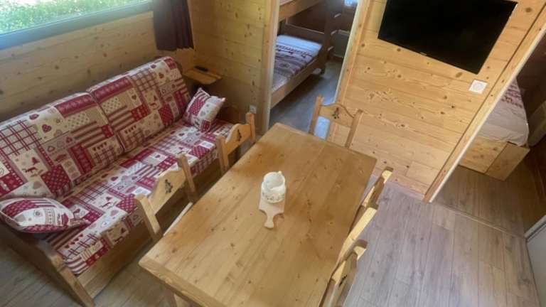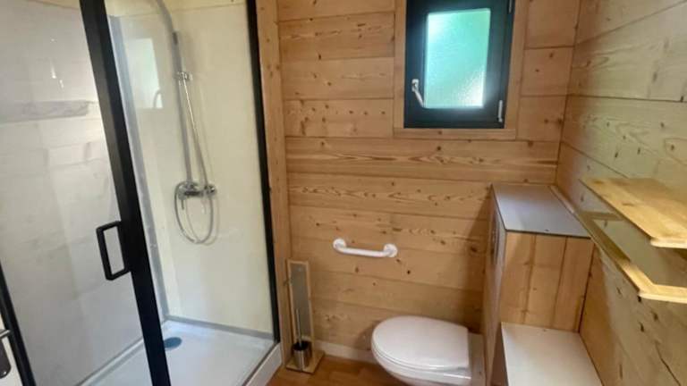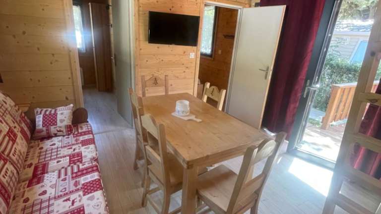 Die Wohneinheiten im Camping L'Enclave mobil-home verfügen über Parkettböden. In bestimmten Einheiten ist eine Küchenzeile vorhanden, die mit modernen Geräten wie Kühlschrank, Geschirrspüler und Mikrowelle ausgestattet ist.