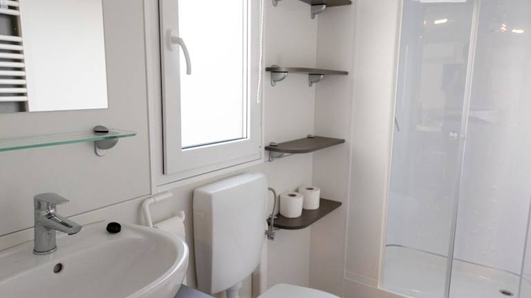 Die Zimmer verfügen über ein voll ausgestattetes eigenes Badezimmer mit Dusche und Haartrockner.