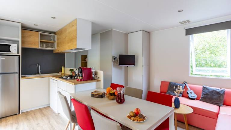 Die Mobilheime im Camping Ty Nénez sind gemütlich und komfortabel eingerichtet. Jedes Mobilheim verfügt über einen Flachbild-TV, Heizung und einen Sitzbereich. Bettwäsche und Handtücher werden gestellt und die eigenen Badezimmer sind mit einer Dusche ausgestattet. Hier können Sie sich wie zu Hause fühlen und Ihren Aufenthalt in vollen Zügen genießen.