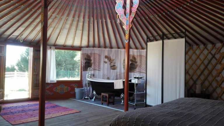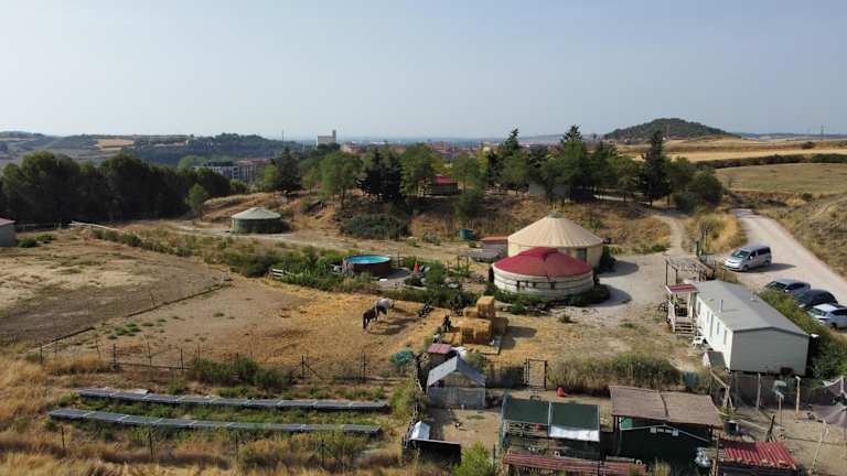 Das Campo de Reyes in Tafalla bietet Ihnen eine einzigartige Übernachtungsmöglichkeit in einer traditionellen mongolischen Jurte. Genießen Sie die idyllische Naturumgebung und den Blick auf die Berge und den Fluss. Die Jurte ist gemütlich eingerichtet und verfügt über ein komfortables Doppelbett sowie Zugang zu einem Gemeinschaftsbad. Das Hotel verfügt über verschiedene Annehmlichkeiten wie einen Garten, eine Bar, eine Gemeinschaftsküche und einen Pool. Nutzen Sie die 24-Stunden-Rezeption und den Tourenschalter, um Ihren Aufenthalt optimal zu gestalten.