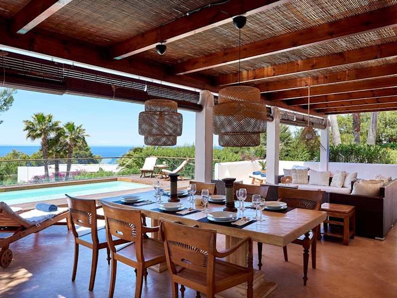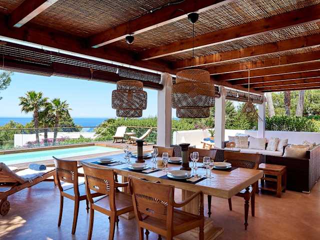 Die elegante Villa Can Mares befindet sich nur 10 Gehminuten vom Strand Cala Tarida entfernt. In der nahen Umgebung laden mehrere Strandbars zum Verweilen ein. Zudem sind Restaurants in Sant Josep de Sa Talaia, etwa 10 Autominuten von der Villa entfernt, zu finden. San Antonio, das mit einem lebhaften Nachtleben und zahlreichen Restaurants, Bars sowie Geschäften aufwartet, ist nach 15 Autominuten erreichbar. Die Stadt Ibiza und der Flughafen Ibiza sind in rund 30 Fahrminuten erreichbar.