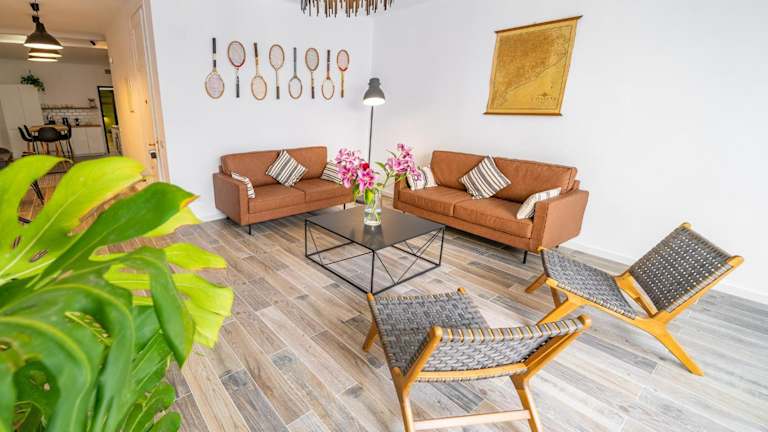 CAN MARTINEZ Calella Beach Boutique Apartment bietet Übernachtungsmöglichkeiten mit Klimaanlage und kostenlosem WLAN. Zur Ausstattung gehören eine Terrasse und ein Sitzbereich.