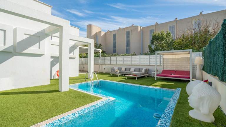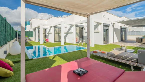 Can Picafort - 4524-53 Mallorca bietet ein Chalet mit einem Außenpool, einem Garten und einer Terrasse, das über kostenfreies WLAN und Poolblick verfügt. Die Unterkunft ist klimatisiert und umfasst einen privaten Pool. Es stehen diverse Annehmlichkeiten zur Verfügung, darunter ein Whirlpool, eine Autovermietung und Nichtraucherzimmer.