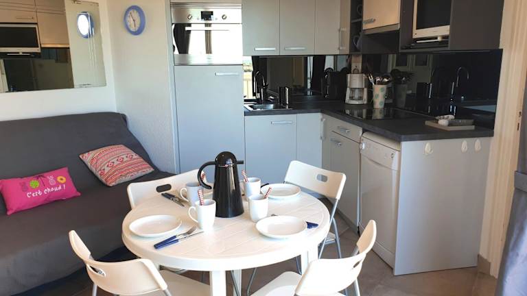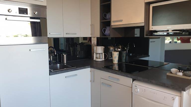 Das Apartment im CAPAO beau T3 vue mer piscine Cap d'Agde verfügt über 2 Schlafzimmer, ein Wohnzimmer, eine Terrasse und eine voll ausgestattete Küche. Mit Meerblick und einer modernen Einrichtung bietet das Apartment den Gästen einen angenehmen Aufenthalt. Handtücher und Bettwäsche können gegen Aufpreis bereitgestellt werden.