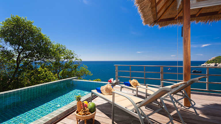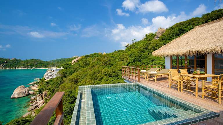 Die Cape Shark Villas befinden sich in einer traumhaften Lage in Ko Tao. Der Strand Sairee ist nur 3,7 km entfernt und die Insel Nangyuan erreichen Sie nach 6,8 km. Der Pier Maehaad ist in nur 15 Fahrminuten erreichbar und der Flughafen Ko Samui liegt 62 km entfernt. Die Villen bieten Ihnen somit eine ideale Ausgangslage, um die Umgebung zu erkunden und die Schönheit der Insel zu genießen.
