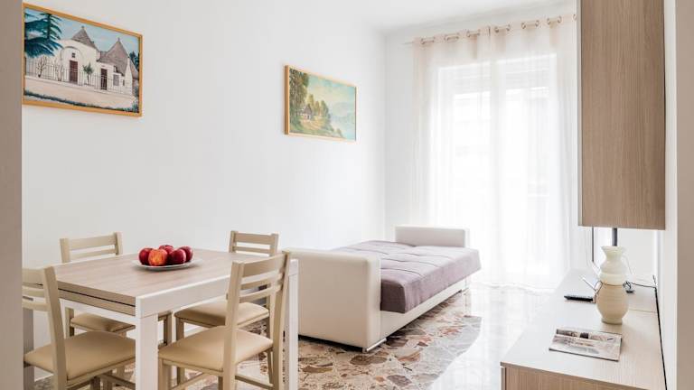Die Unterkunft befindet sich in einer zentralen Lage, etwa 800 Meter vom Strand Spiaggia di Porta Vecchia entfernt. Der Strand Lido Pantano ist 1,2 Kilometer entfernt, während der Strand Porto Rosso ebenfalls 1,2 Kilometer von der Unterkunft aus erreichbar ist. Der Hauptbahnhof Bari liegt in einer Entfernung von 45 Kilometern, und der nächstgelegene Flughafen ist der Flughafen Bari Karol Wojtyla, der 57 Kilometer entfernt ist.