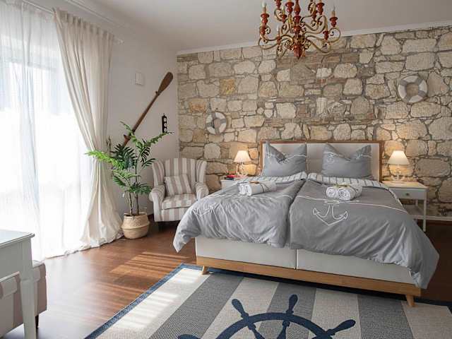 Die Captain's Suite bietet ein modernes und komfortables Apartment mit zwei Schlafzimmern, in dem Sie sich wie zu Hause fühlen können. Das Apartment verfügt über ein voll ausgestattetes Badezimmer, hochwertige Bettwäsche und Handtücher sowie einen Flachbild-TV und einen Essbereich. Die voll ausgestattete Küche ermöglicht es Ihnen, Ihre eigenen Mahlzeiten zuzubereiten, und der Balkon bietet einen schönen Blick auf den Garten.