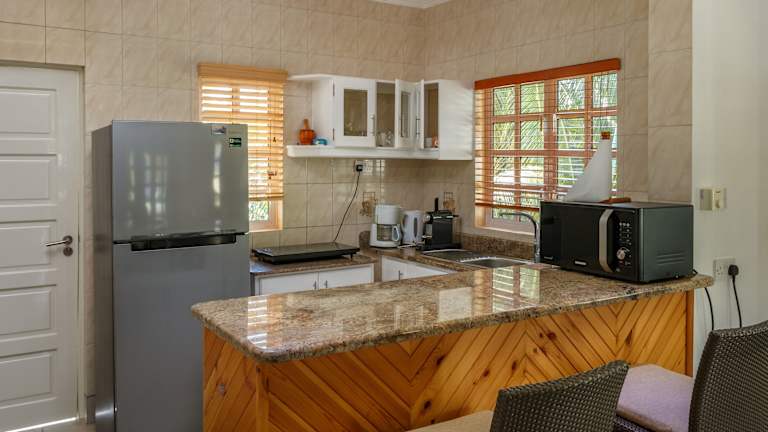 Die Captain's Villa ist ein charmantes Hotel an der südöstlichen Küste von Mahe, nur wenige Schritte vom wunderschönen Strand Anse Forbans entfernt. Hier können Gäste das reiche Meeresleben beim Schnorcheln erkunden. Das Hotel bietet eine Auswahl an Pension und Selbstversorgerunterkünften, darunter Familiensuiten und Suiten mit 2 Schlafzimmern. Ein optionales Frühstück ist auf Anfrage erhältlich. In der Umgebung gibt es Lebensmittelgeschäfte und Restaurants, die bequem zu Fuß erreichbar sind. Kostenfreies WLAN und Parkplätze stehen zur Verfügung. Autovermietung und Flughafentransfers sind ebenfalls verfügbar. Der Flughafen Seychellen ist nur 11 km entfernt.
