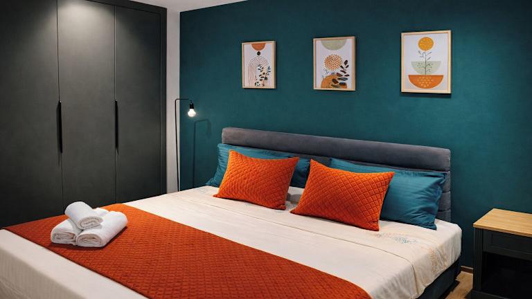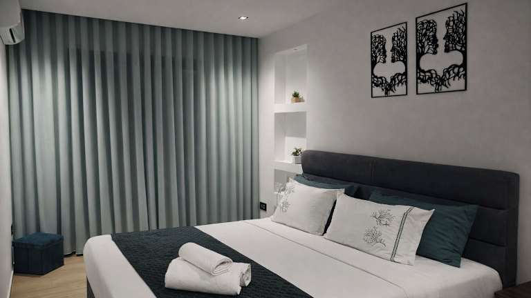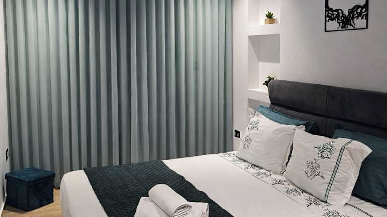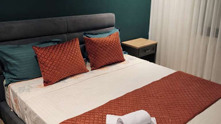 Das klimatisierte Apartment verfügt über 2 Schlafzimmer, ein gemütliches Wohnzimmer und eine voll ausgestattete Küche mit Kühlschrank und Kaffeemaschine. Das Badezimmer ist mit einer Badewanne oder einer Dusche sowie kostenlosen Pflegeprodukten ausgestattet. Handtücher und Bettwäsche werden gestellt, um Ihnen einen angenehmen Aufenthalt zu ermöglichen.