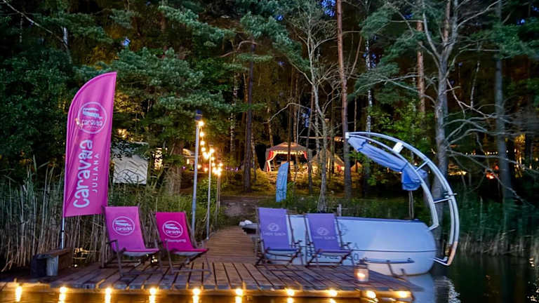 Das Caravana Juliana - Glamping liegt in Swaderki in der Region Ermland-Masuren. Der Busbahnhof Olsztyn ist 40 km entfernt. Die Umgebung bietet zahlreiche Möglichkeiten zum Wandern, Angeln und Radfahren. Das Olsztyn-Stadion ist 40 km entfernt und der Mazury Golf Country Club erreicht man nach 35 km. Der Flughafen Olsztyn-Mazury ist nur 46 km entfernt.