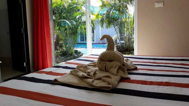 Die klimatisierten Zimmer verfügen über ein großes Kingsize-Doppelbett, einen kleinen Esstisch und 2 Flaschen Wasser. Jedes Zimmer hat ein eigenes Bad, das mit einer Warmwasserdusche und kostenfreien Pflegeprodukten ausgestattet ist.