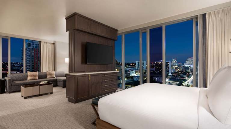 Die Zimmer im Carte Hotel San Diego Downtown, Curio Collection By Hilton sind klimatisiert und verfügen über einen Flachbild-TV und einen Safe. Jedes Zimmer hat ein eigenes Badezimmer mit kostenfreien Pflegeprodukten und einige Zimmer bieten einen herrlichen Blick auf die Stadt. Ein Schreibtisch und eine Kaffeemaschine gehören ebenfalls zur Ausstattung.