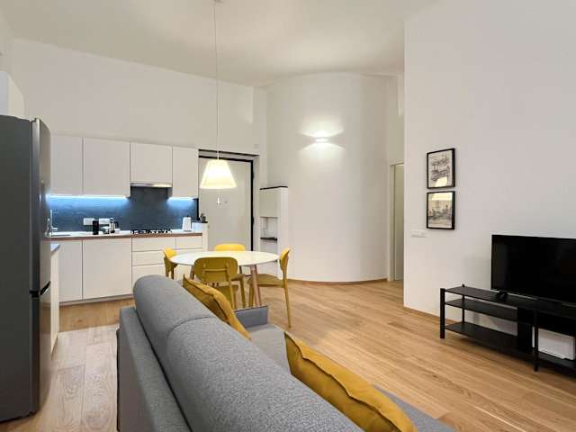 Die Ferienwohnung beinhaltet ein Schlafzimmer, ein Wohnzimmer und eine voll ausgestattete Küche, die mit einem Kühlschrank und einer Kaffeemaschine ausgestattet ist. Zudem stehen den Gästen ein Badezimmer mit Bidet und Dusche sowie Handtücher und Bettwäsche zur Verfügung.