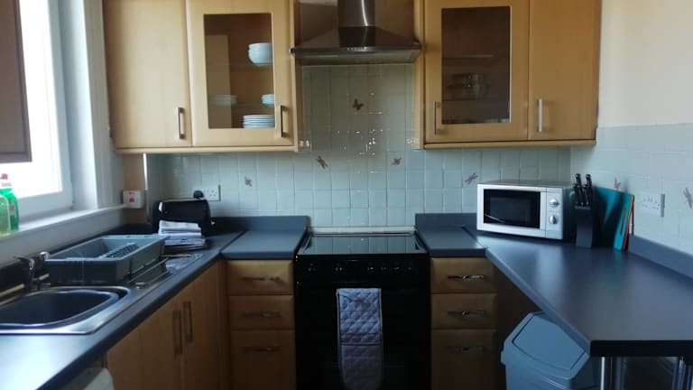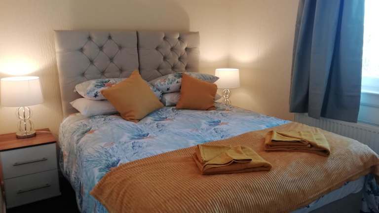Die Ferienwohnung verfügt über zwei Schlafzimmer, die Platz für bis zu 6 Personen bieten. Das gemütliche Wohnzimmer ist mit einem Flachbild-TV ausgestattet, auf dem Sie Ihre Lieblingssendungen genießen können. Die voll ausgestattete Küche bietet alles, was Sie für die Zubereitung Ihrer Mahlzeiten benötigen, einschließlich Kühlschrank und Backofen. Das Badezimmer verfügt entweder über eine Badewanne oder eine Dusche. Handtücher und Bettwäsche werden gestellt, so dass Sie sich um nichts kümmern müssen.