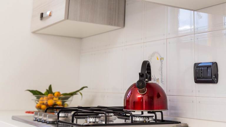 In der Ferienwohnung befindet sich eine gut ausgestattete Küche mit einem Kühlschrank und einem Ofen. Grillmöglichkeiten sind ebenfalls vorhanden.