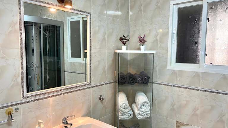 Das Ferienhaus bietet Platz in 4 Schlafzimmern und verfügt über eine voll ausgestattete Küche mit Kühlschrank und Geschirrspüler. Zur Ausstattung gehören ein Flachbild-TV, ein Sitzbereich und 3 Badezimmer, die mit einem Bidet ausgestattet sind. Handtücher und Bettwäsche werden bereitgestellt.