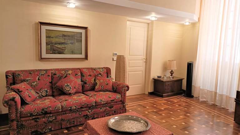 Die Ferienwohnung umfasst zwei Schlafzimmer, ein Wohnzimmer und eine voll ausgestattete Küche mit Kühlschrank und Wasserkocher. Es gibt zwei Badezimmer, die mit einem Bidet und einer Dusche ausgestattet sind. Handtücher und Bettwäsche werden bereitgestellt.