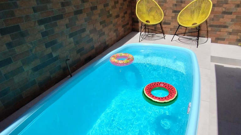 Die Casa Amarela da Prainha de Mambucaba - Piscina aquecida bietet Übernachtungsmöglichkeiten mit einem eigenen Pool sowie Bergblick. Die Unterkunft besitzt einen Außenpool und kostenfreien Privatparkplatz.